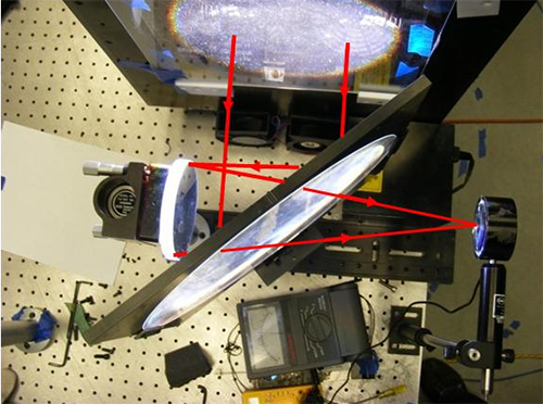 使用菲涅爾透鏡系統(tǒng)進(jìn)行的測(cè)試,以達(dá)到所需的高準(zhǔn)直度