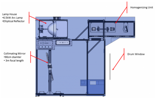 科學家聯(lián)系了我們,需要開發(fā)定制的太陽能模擬器,以實現(xiàn)政府的高度優(yōu)先研究計劃。他們對研究高層大氣中的空氣污染效應(yīng)和光化學具有獨特而特殊的光譜要求??蛻舻臉悠肥沂且粋€裝有懸浮氣溶膠的旋轉(zhuǎn)圓柱鼓,需要均勻和準直的照明。但是,狹窄的實驗室空間以及連接到樣品桶的其他設(shè)備的存在對我們提出的解決方案施加了多個限制。
