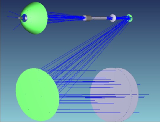 在**初的概念設(shè)計階段,制作了幾種不同的光線跟蹤模型來評估**有效的光學設(shè)計。找到光學元件的正確幾何位置還需要對光學設(shè)計進行幾處改動。進行了多次射線追蹤模擬,以評估準直度和輻照度分布。