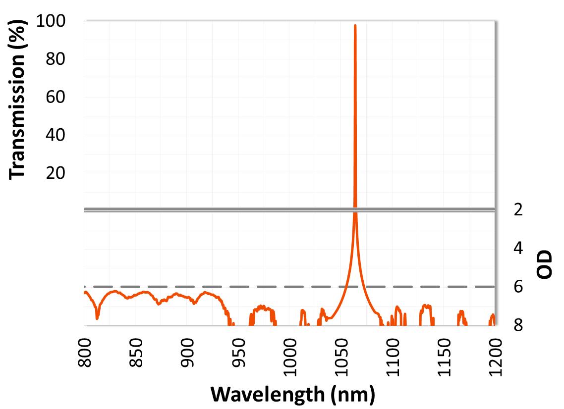 圖1.具有OD6阻斷的超窄帶濾波器,用于1064 nm Nd:YAG激光器。